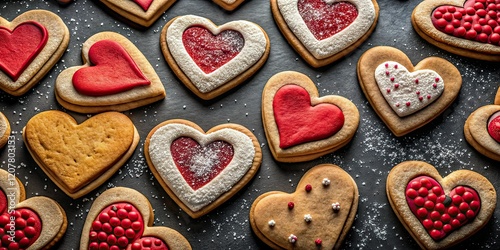 Heart Shaped Cookies Studio Shot - Black Background Landscape