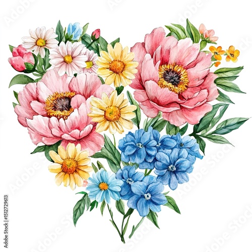 Heart Shaped Floral Bouquet Watercolor Illustration