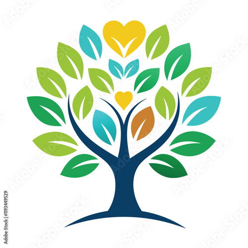 Heart Tree Logo - Vector Illustration for Print, Cartoon Clipart, and Line Art Design.eps