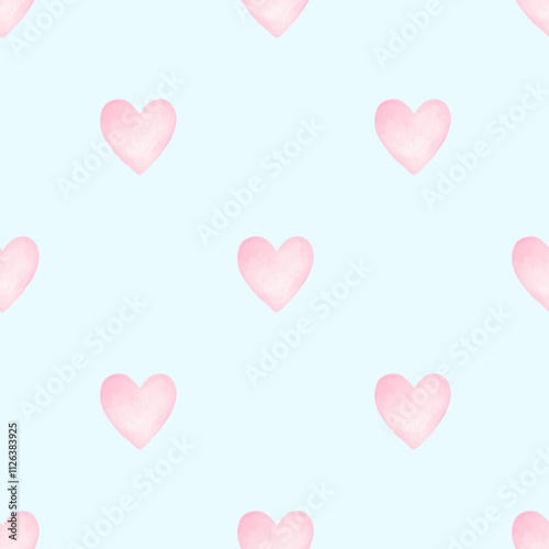 heart. Watercolor seamless pattern in pastel colors for textile and paper. Cute watercolor illustration for Valentine's Day