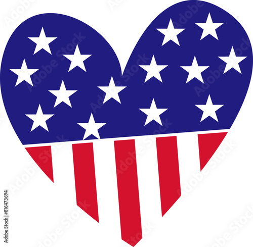 heart with american flag colors and symbol