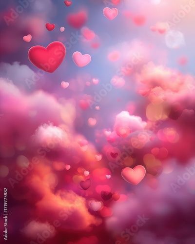 Heart-Filled, Dreamlike Cloudscape - A Romantic Valentines Day Vision.