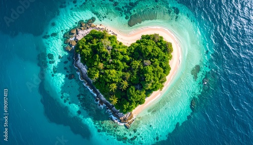 Heart-shaped island paradise with turquoise waters