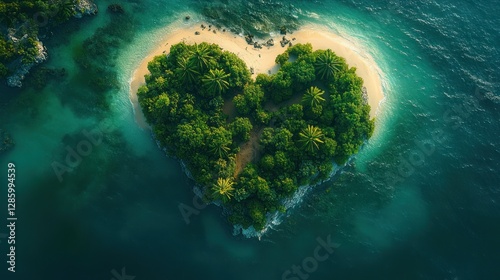 Heart-shaped Island, Tropical Paradise, Aerial View, Calm Ocean