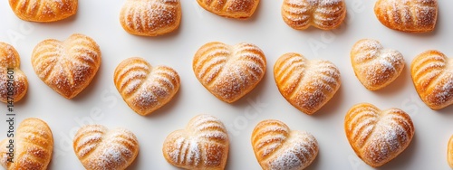 nubes, bun, pastry, valentine, sugar, powder, breakfast, romantic, love, bakery, sweet, food, dessert, homemade, snack, holiday, celebration, white, background, top, view, flat, lay, delicious, fresh, baked, gold, tasty, traditional, pattern, cookery, culinary, epicure, confectionery, treat, indulgence, comfort, cosy, morning, special, occasion, anniversary, dating, couple, human relationships, affection, gift, surprise