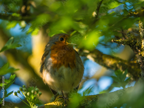 robin, bird, nature, wildlife, animal, tree, shady, shade, glade