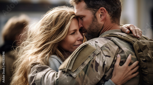 heartwarming moment when an American soldier returns home and is welcomed by their family at the airport. Tears of joy flow freely as they share a long and heartfelt embrace