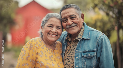 Heartwarming scene of an elderly couple enjoying a sunny day, embracing love and happiness, cherishing joyful moments together in a peaceful park setting