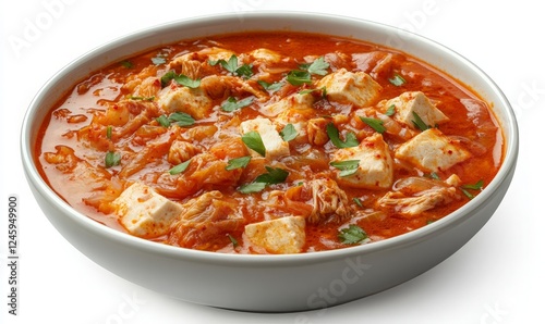 Hearty Bowl of Tomato-Based Chicken Stew with Fresh Herbs - A Comforting Meal for Any Occasion