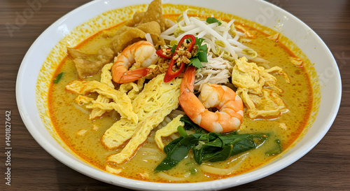noodle, soup, curry, asian, food, stir fry, shrimp, chicken, vegetable, noodle, dish, cookery, eatery, lunch, dinner, meal, plate, bowl, delicious, tasty, appetising, yellow, brown, white, homemade, traditional, spicey, protein, healthy, fresh, comfort, portion, fast, fast food
