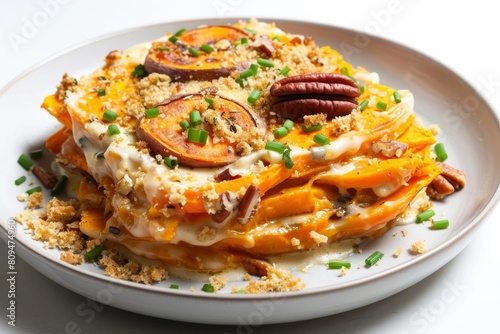 isolated, white, plate, background, comfort food, culinary arts, gourmet food, pecan