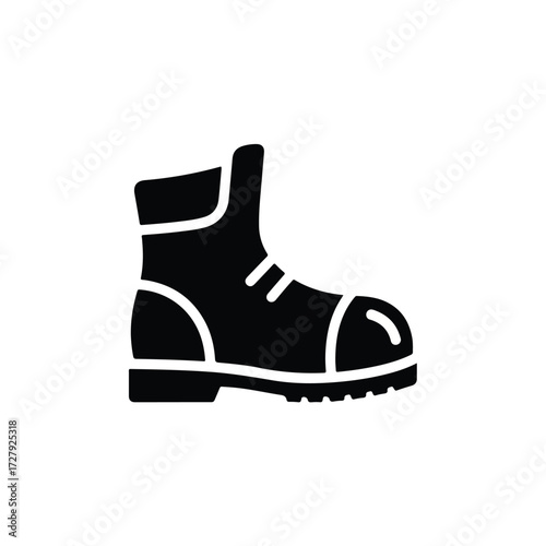 boot, icon, shoe, vector, work, safety, footwear, glyphs, symbol, black, silhouette, isolated, industrial, construction, combat, military, hiking, style, signs, graphic, illustration, design, heavy, protection, protective, equipment, men at work, army, fashion, object, simple, solid, pictogram, logotype, element, white, outline, rugged, hard-wearing, tough, labor, apparel, accessory, trekking, walking, foot, ankle, sole