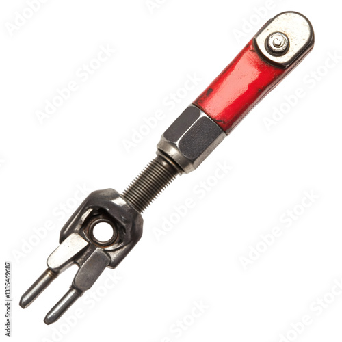 Heavy-duty adjustable spanner wrench tool with red handle, designed for mechanical repair, bike maintenance, and industrial applications, isolated on white background