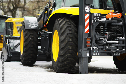 construction, equipment, winter, tractor, snow, heavy, duty, machinery, industrial, site, vehicle, work, large, wheel, tire, cold, frost, landscape, men at work, yellow, mechanical, outside, outdoors, daytime, glacé, scene, maintenance, powerful, rugged, technology, engine, loader, shoveling, icy, machine, grip, stability, engineering, transport, truck, productivity, robust, manual