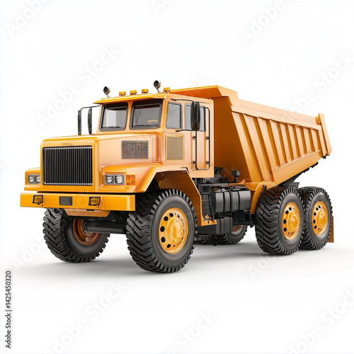 Heavy-duty construction truck isolated on white background