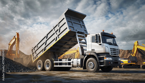 truck, construction, unloading, equipment, powerful, operation, operator, logistic, photograph, progress, performance, efficient, plan, management, custom, advanced, picture, innovation, project, system, load, representation, earth, setting, image, safe, idea, accurateness, haul, moving, build, builder, shadow, perspective, dropped, layout, maintenance, work, driver, heavy, development, service, process, machinery, vehicle, cargo, commercial, delivery, location