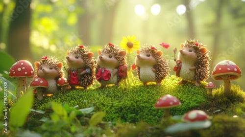 hedgehog, forest, moss, cute, animal, nature, wildlife, miniature, green, brown, red, mushroom, path, adorable, photo, fauna, wild, creature, garden, timberland, spiky, small, tiny, prickly, mammal, grass, leaf, sun, sunbeam, light, flower, summer, outdoors, bush, image, soft, bright