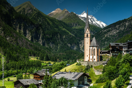 alpine, alps, architecture, austria, blue, building, catholic, church, europa, forest, green, heritage, hillside, historic, landscape, mountain, nature, parish, peaceful, religion, scenic, sky, church steeple, summer, tour tourism, traditional, travel, vale, view, village