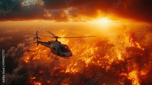 helicopter, wildfire, fire, sunset, sky, cloud, flames, rescue, emergency, disaster, aerial, forest, nature, danger, smoke, heat, aircraft, burning, damage, crisis, response, prevention, control, protection, safety, hot, orange, red, carbon, pollution, environmental, destruction, recovery, support, volunteer, aid, community, government, environment, evacuation