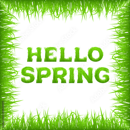 Hello spring inscription made of grass.