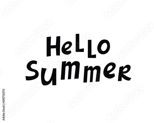 Hello summer lettering in black. Morden fun hand drawn writing, vector illustration