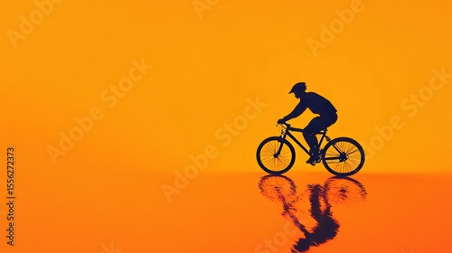 Helmeted cyclist in silhouette glides through a vibrant sunset scene, embodying the active lifestyle as the sun sets with high contrast lighting effects.