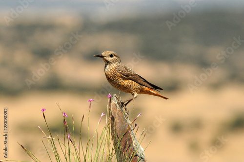Hembra de roquero rojo posa sobre las rocas en la sierra abulense