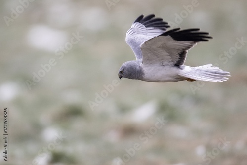 Hen harrier (Circus cyaneus), male, flying, Emsland, Lower Saxony, Germany