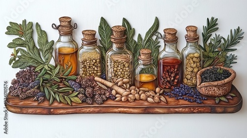 Herbal medicine display home environment gigapixel content natural lighting aesthetic arrangement