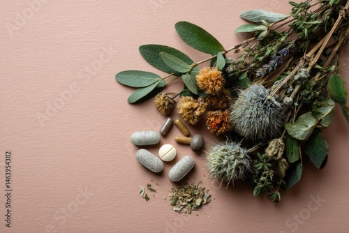 Herbal Remedies: Dried Flowers, Capsules, and a Serene Palette