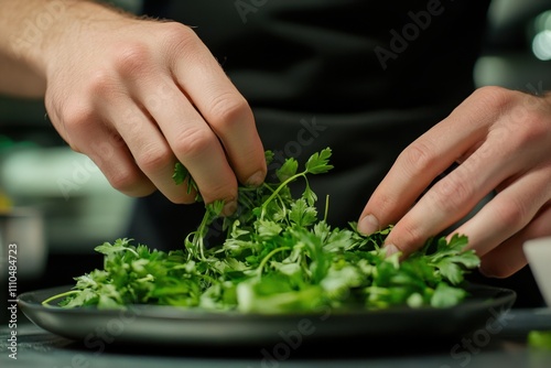 Herbs preparation for culinary delights home kitchen cooking demonstration indoor setting close-up view emphasizing freshness and flavor enhancements with herbs