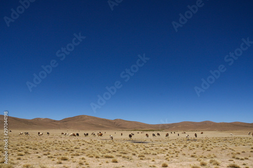 Herd of llamas on the Bolivia plateau
