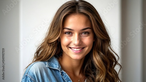 banner, billboard, circle, hanging, white, horizontal, cut-out, photo, photograph, woman, young, long hair, smiling, looking, camera, hook, wall, background, blurred, out of focus, image, design, template, branding, advertising, marketing, presentation, visual, graphic, element, realistic, high-quality, professional, creative, modern, clean, simple, minimal, elegant, stylish, trendy, photorealistic, three-dimensional, render
