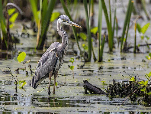 Heron in a swampy area