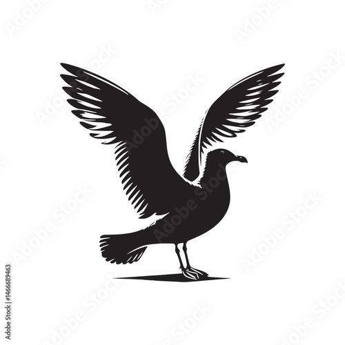 Herring Gull Vector Silhouette, Majestic Seabird Design, Coastal Bird Illustration, Detailed Avian Outline, Ocean Wildlife Art, Marine Bird Symbol.