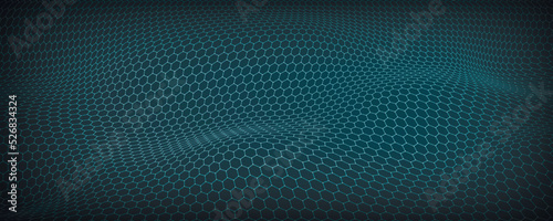 Hexagon wave background. Abstract hexagonal perspective grid. Distorted mesh.