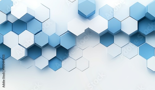 Hexagonal patterns in varying shades of blue create a modern and abstract design on a light background