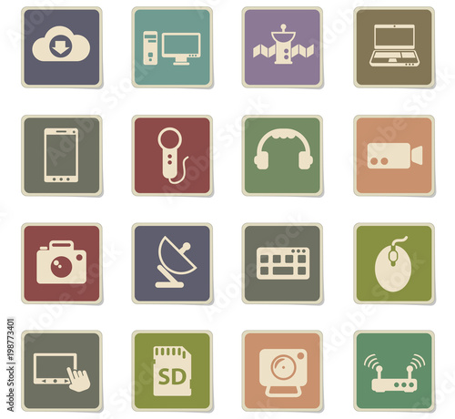 icon, vector, symbol, high technology, cloud, computer, satellite, laptop, microphone, earphones, camcorder, camera, keyboard, mouse, tablet, webcam, router