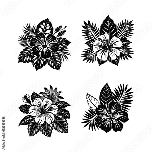 hibiscus, vector, tropical flower, floral, botanical, summer flowers, floral pattern, nature, tropical, blossom, bloom, garden flower