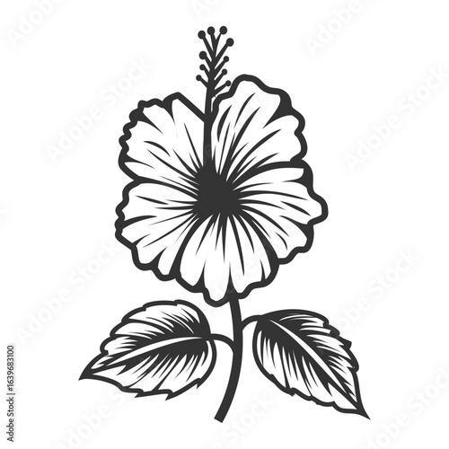 Hibiscus Line Art Stamp - Vintage Floral Vector