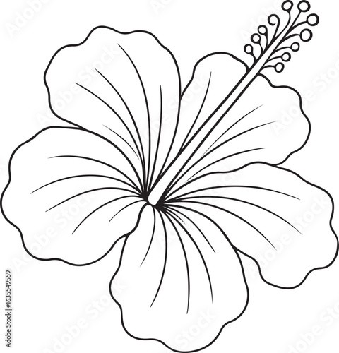 Hibiscus Outline Icon, Tropical Flower Vector Illustration on White Background.