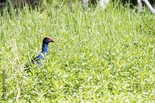 Hidden Swamphen walking in the marsh