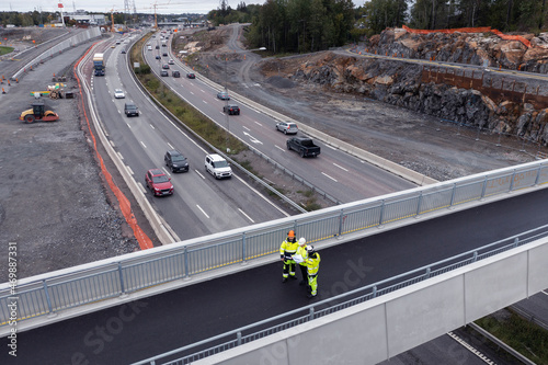 men at work, construction worker, profession, occupation, professional occupation, conveyance, roadwork, construction industry, construction site, housing development, work clothes, infrastructure, road, route, footpath, pathway, people, person, engineer, architect, collaborate, collaboration, collaborating, cooperation, team, teamwork, transport, transportation, vehicle, vehicle, construction, employment, job, working, horizontal, outdoors, outside