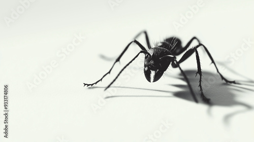 High contrast close up of a vintage ant with a minimalist approach on a clear, bright backdrop