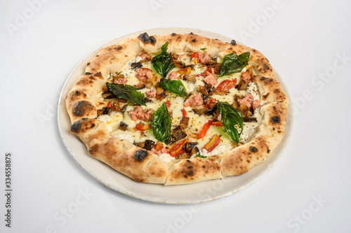 pizza, food, cheese, isolated, italian, tomatoes, meal, dinner, crust, white, snack, pepper, plate, lunch, delicious, mozzarella, baked, vegetable, dough, tasty, epicure, sauce, pepperoni, onion, red, spinach