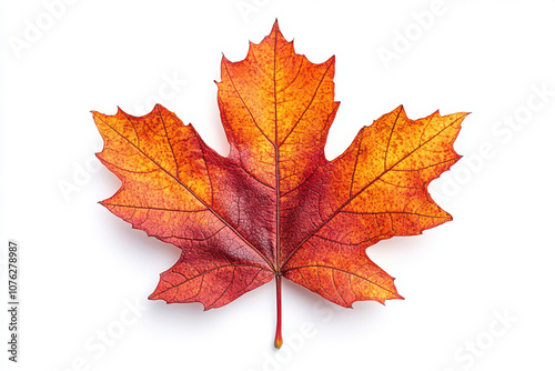 high definition close up image of single vibrant autumn leaf with intricate details and vivid colors, showcasing beauty of nature. leaf texture and veins are clearly visible