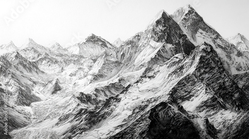 mountain, peak, alpine, landscape, nature, scenic, vignetting, drawing, crayons, monochrome, grey, black, rugged, highland, outdoors, wilderness, elevation, summit, snow, rocky, texture, horizon, serene, environment, majestic, adventure, natural, scenery, sketching, artistic