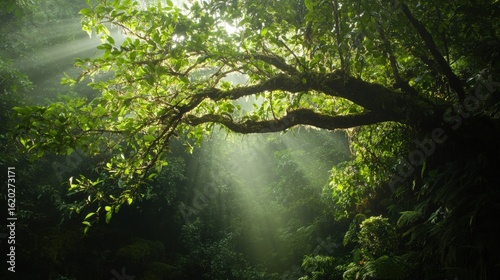 High quality photo of a tree with lush foliage Angle of view showing branches growing from a solid trunk and leaves