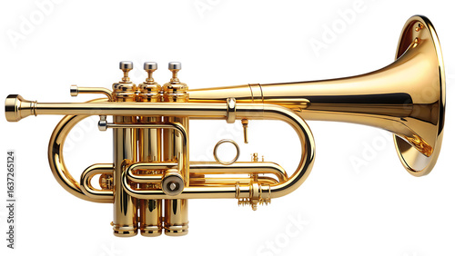 high quality stock photo of a golden trumpet isolated on white background PNG , AI GENERATED