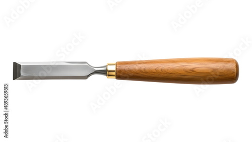 High quality woodworking chisel with sharp metal blade and wooden handle on a white background perfect for various carpentry tasks